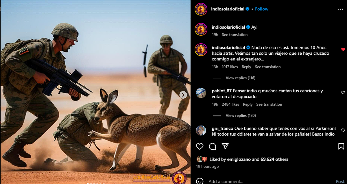 ¿Pero qué ocurrió? El Indio posteó algunas imágenes realizadas con IA (Inteligencia artificial) para opinar sobre el DNU y los decretos de emergencia anunciados por el presidente Javier Milei.