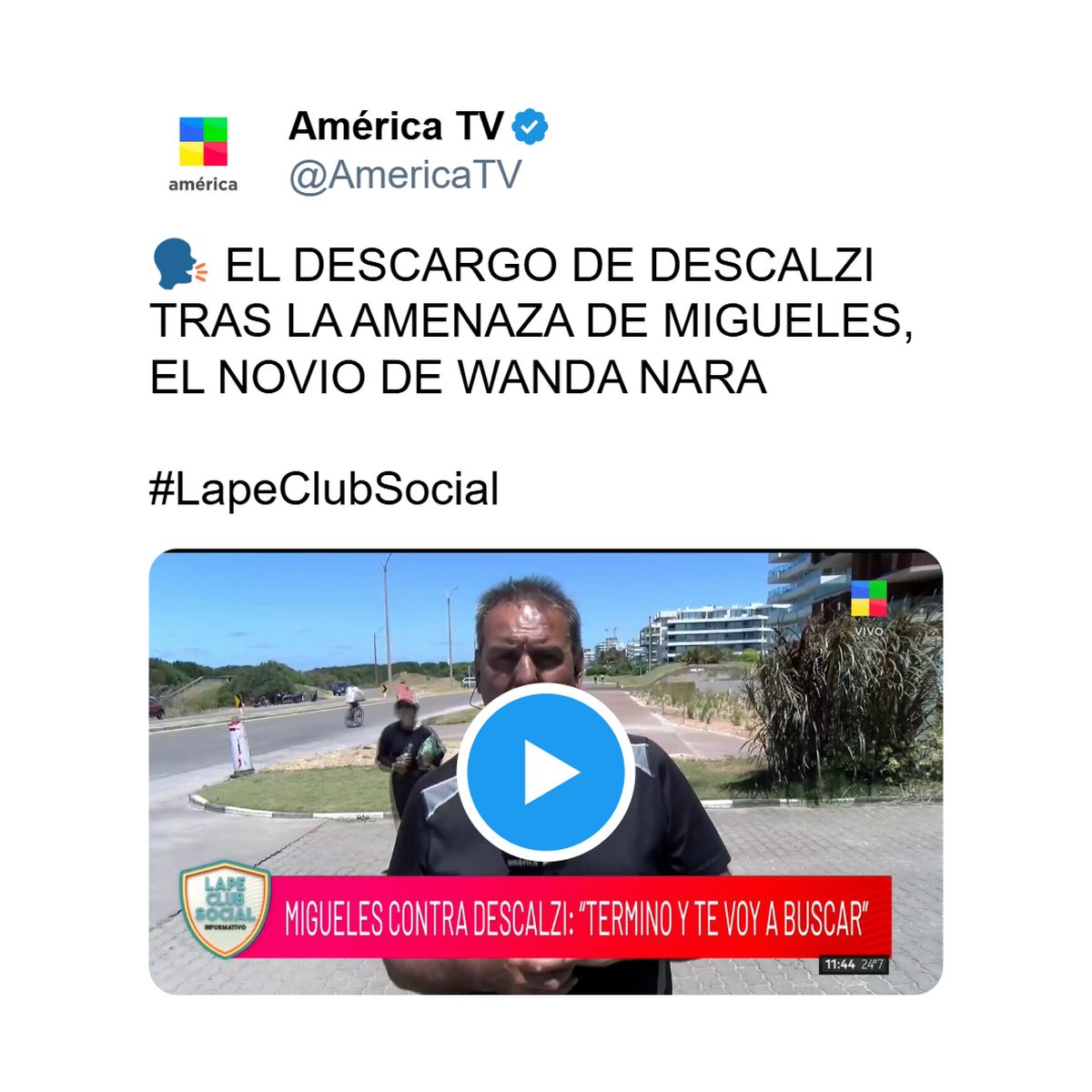 "Termino esto y te voy a ir a buscar". Así fue la frase textual de Martín Migueles que quedó registrada en video y que fue contada en primera persona por Gustavo Descalzi, el cronista uruguayo de Infama (América TV), al aire del programa que conduce Marcela Tauro. El episodio ocurrió a la salida de un shopping de Punta del Este, en un lugar público, con gente alrededor y delante de Wanda Nara y sus hijas.