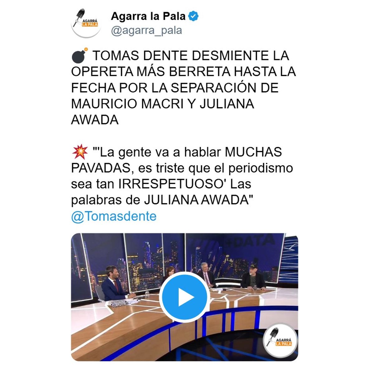 El mensaje de Juliana Awada no llegó por conferencia ni por una entrevista pactada, sino por un texto privado que Tomás Dente leyó al aire en LN+, lo que ya dice bastante sobre el clima que se vivía en ese momento en los medios, con productores, panelistas y redes buscando ordenar el caos. "La gente va a hablar muchas pavadas, es triste que el periodismo sea tan irrespetuoso", dijo Awada sin rodeos.