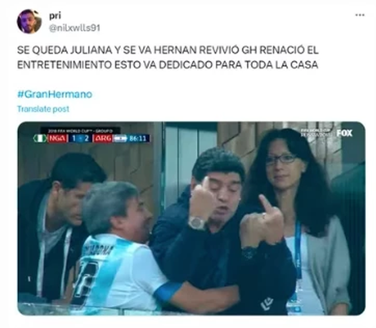 El primer participante eliminado de Gran Hermano durante la Gala de Eliminación del domingo ha sido el cordobés, Hernán Ontivero, con el 52,6 por ciento de los votos, hecho que sorprendió a los que anhelaban la salida de Juliana alias “Furia”. La gente de afuera del reality apoyó a la ‘chica disruptiva’ de GH y una horda de memes inundaron las redes sociales.