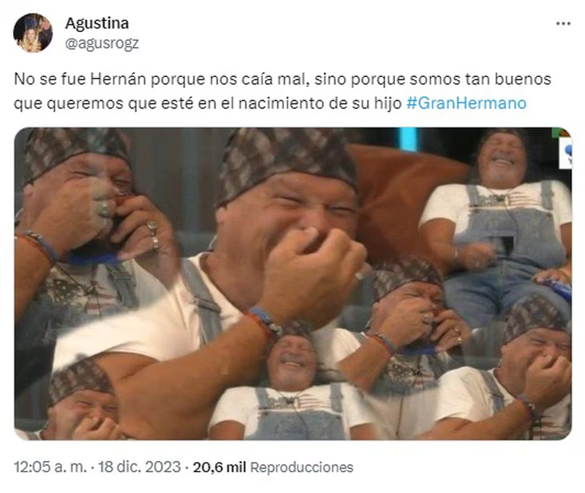 El principal factor que incidió en que el público de GH eligiera al cordobés como primer eliminado, radica en que se conoció que Hernán dejó afuera de la casa a una novia embarazada -a punto de parir- antes de entrar al reality. Ello generó en redes que lo acusaran de "machirulo" y "abandónico", pese a que la familia del riocuartense lo salieran a 'bancar' en programas de chimentos asegurando que no saben si ese bebé es de él realmente.