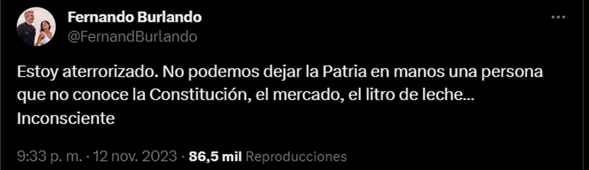 "Estoy aterrorizado. No podemos dejar la Patria en manos una persona que no conoce la Constitución, el mercado, el litro de leche…Inconsciente".