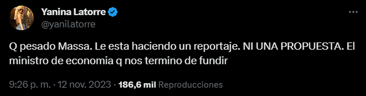 "Qué pesado Massa. Le está haciendo un reportaje. NI UNA PROPUESTA. El ministro de economía que nos terminó de fundir".
