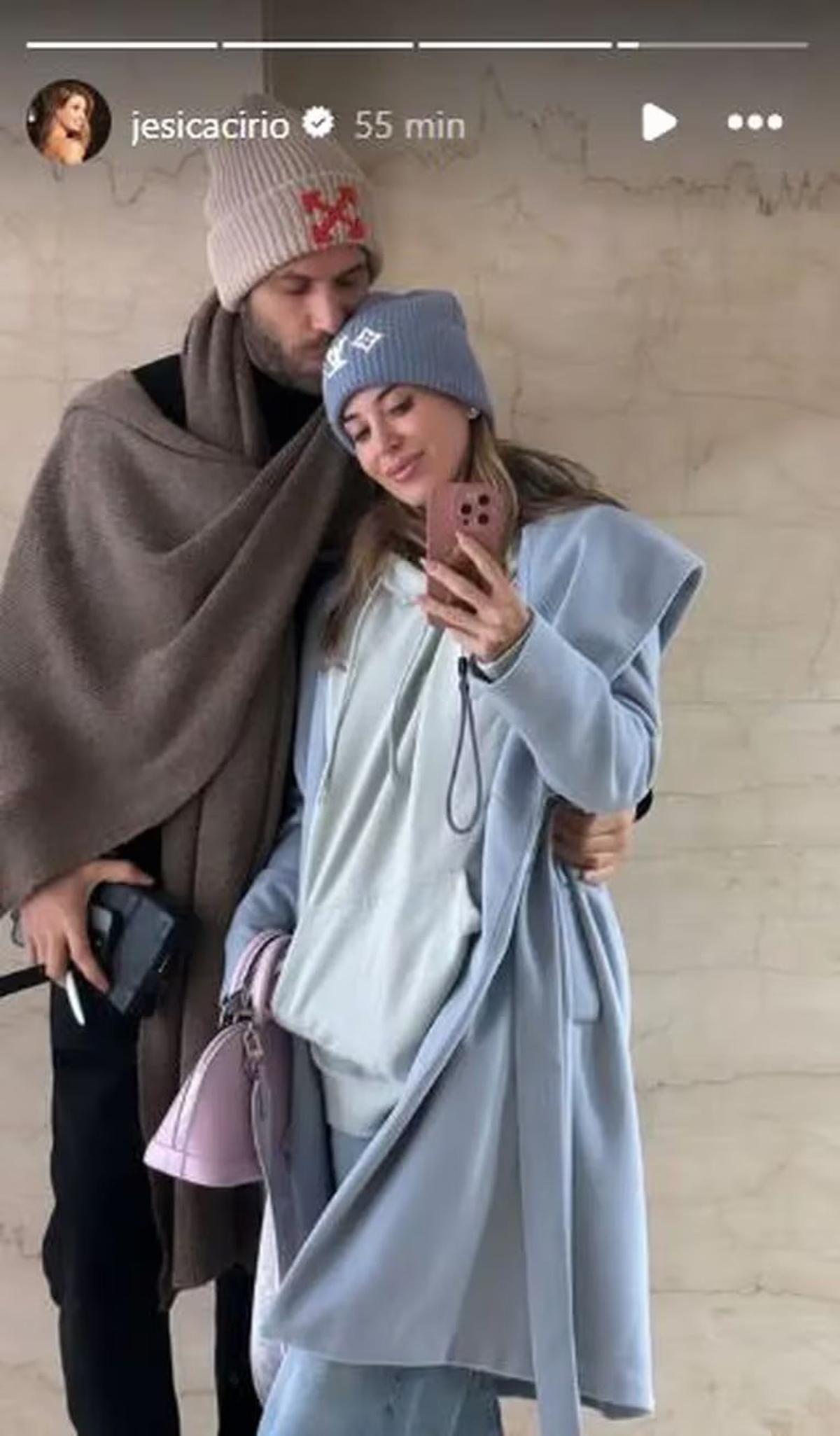 En la foto compartida por Cirio se la puede ver adelante de un espejo junto a Elías Piccirillo, ambos muy abrigados con gorritos de lana y tapados. Una foto en la que se ven muy unidos y compartiendo momentos juntos en sus primeros meses de noviazgo.