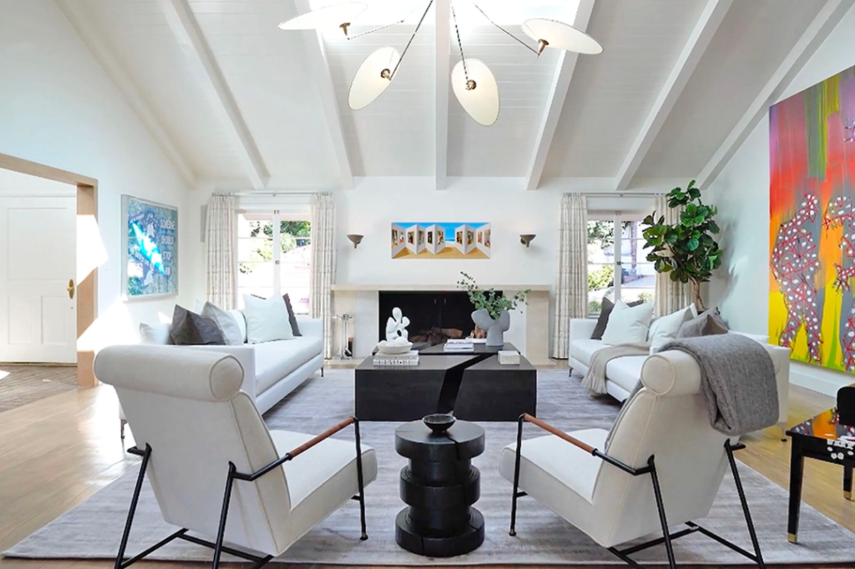 La estética neutra y discreta de la casa está marcada por toques de color dramáticos, algunos de los cuales son proporcionados por la propia obra de arte del actor, que ha ganado reconocimiento por sus piezas audaces, gráficas y saturadas de color, pero el arte y los recuerdos no están a la venta con la casa.