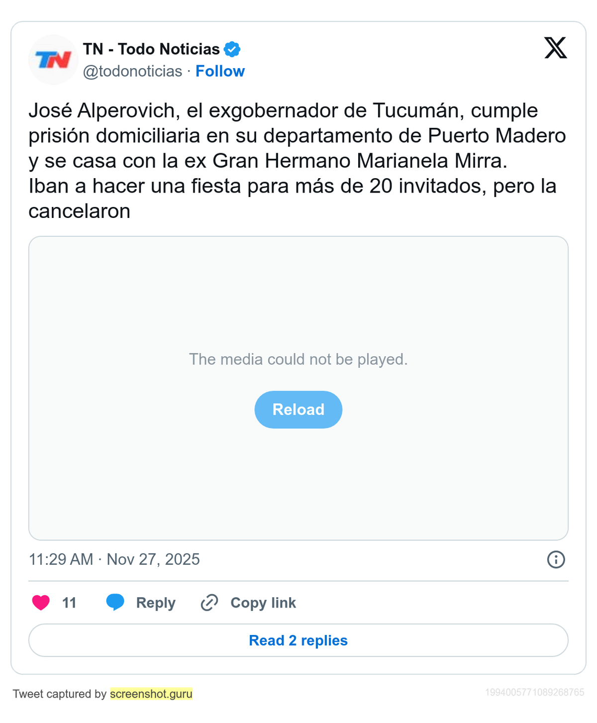 Aunque la idea era hacer una fiesta bien íntima, en TN terminaron contando algo que muchos sospechaban: "Iba a haber una fiesta real, con más de 20 invitados pero tuvieron que tirarse para atrás". Y no es que se les pinchó el entusiasmo, sino que a Alperovich le agarró miedo de que el movimiento de gente en su departamento de Puerto Madero (el mismo en el que cumple prisión domiciliaria por una condena de 16 años por abuso sexual) desatara un enojo judicial difícil de revertir.