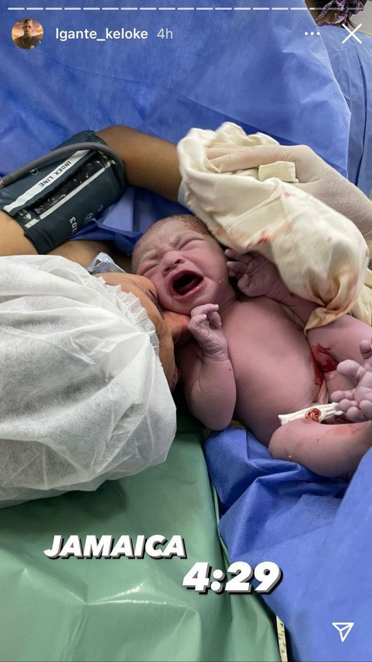 Después de confirmar el nacimiento, L-Gante compartió fotos del parto y las primeras imágenes de la beba con su mamá junto al escrito: “Jamaica Valenzuela”.