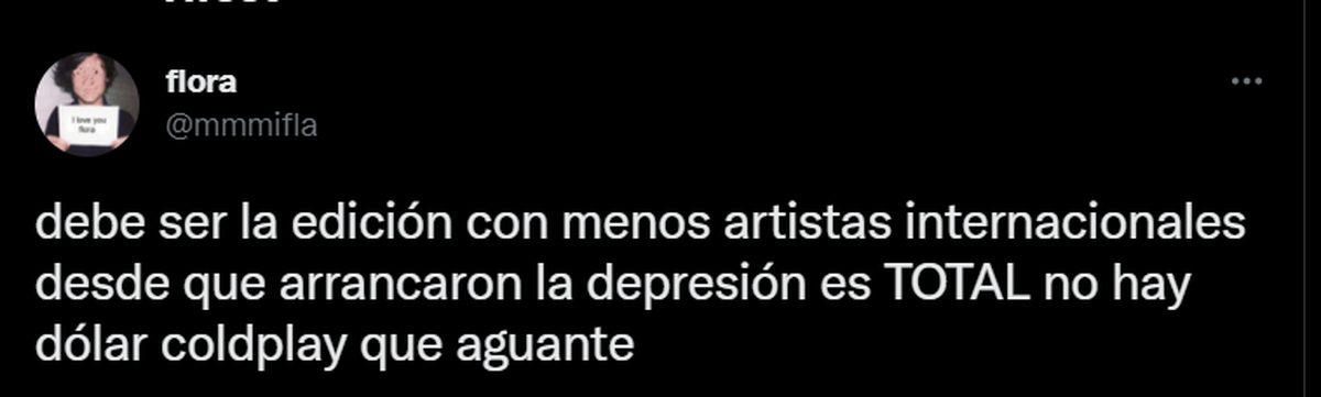 Recordemos que una de las grandes complicaciones actuales es la falta del dólar y las restricciones que hay, que dificultan el pago a los artistas internacionales -por lo que se está tratando de impulsar el nuevo tipo de cambio para el dólar cultural o dólar Coldplay-.