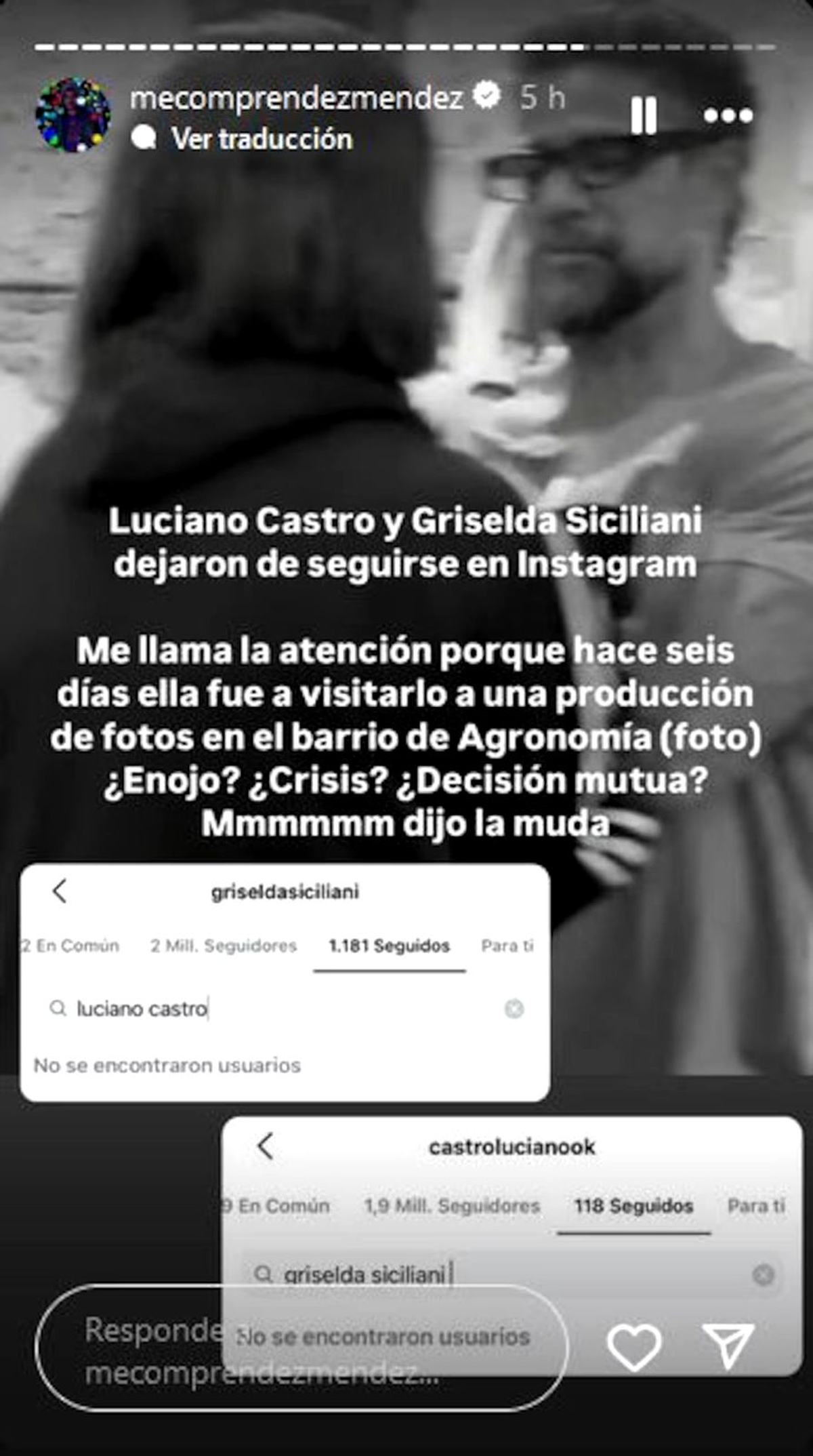 Las cosas fueron más allá cuando se confirmó que Griselda también borró las fotos que tenía con Luciano en Instagram. Para colmo, los intérpretes se dejaron de seguir en dicha red social. Parece ser que las cosas no marchan nada bien entre ellos.