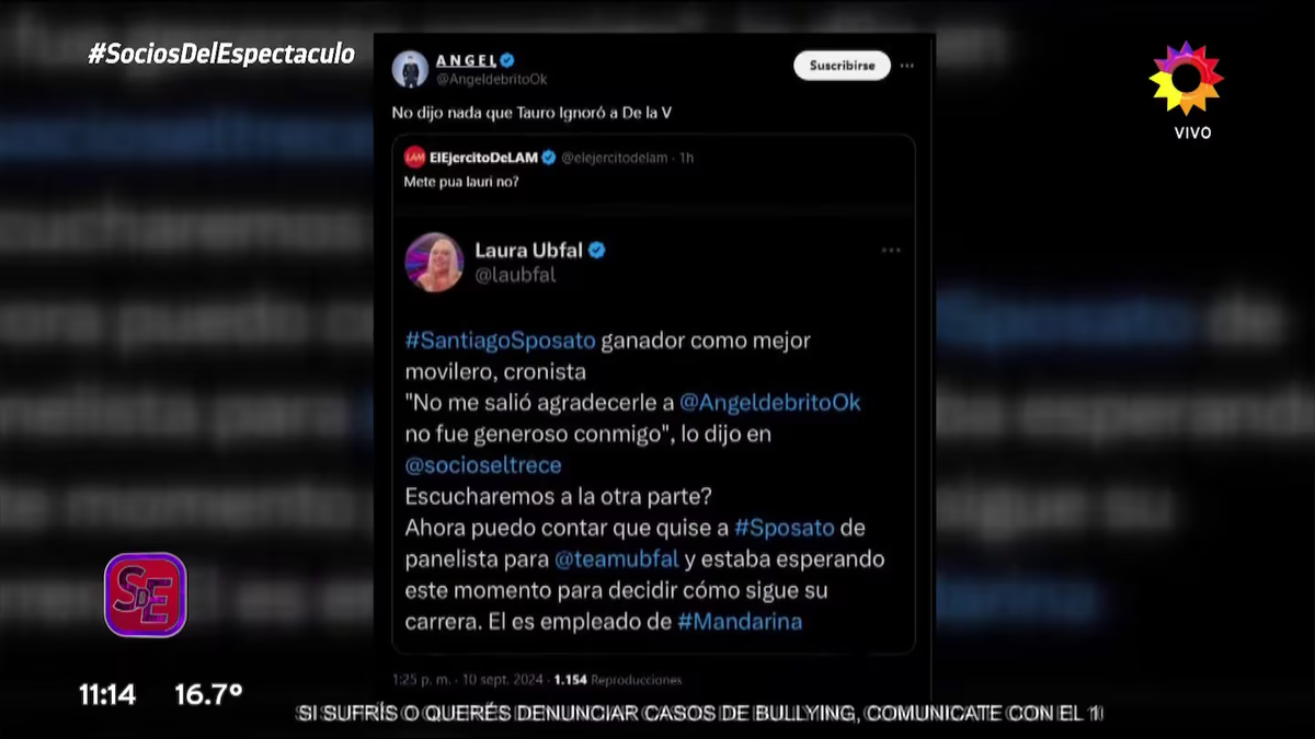 Fue Ángel de Brito quien también se lo remarcó a Laura Ubfal, quien es panelista y amiga de la conductora de Intrusos.