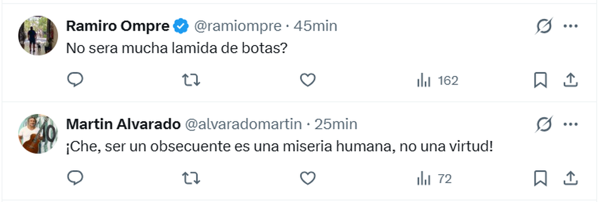 Inmediatamente, el posteo de Nik se llenó de respuestas: al momento de publicar esta nota, tenía más de 200 mensajes, todos criticando su obsecuencia y chicaneándolo.