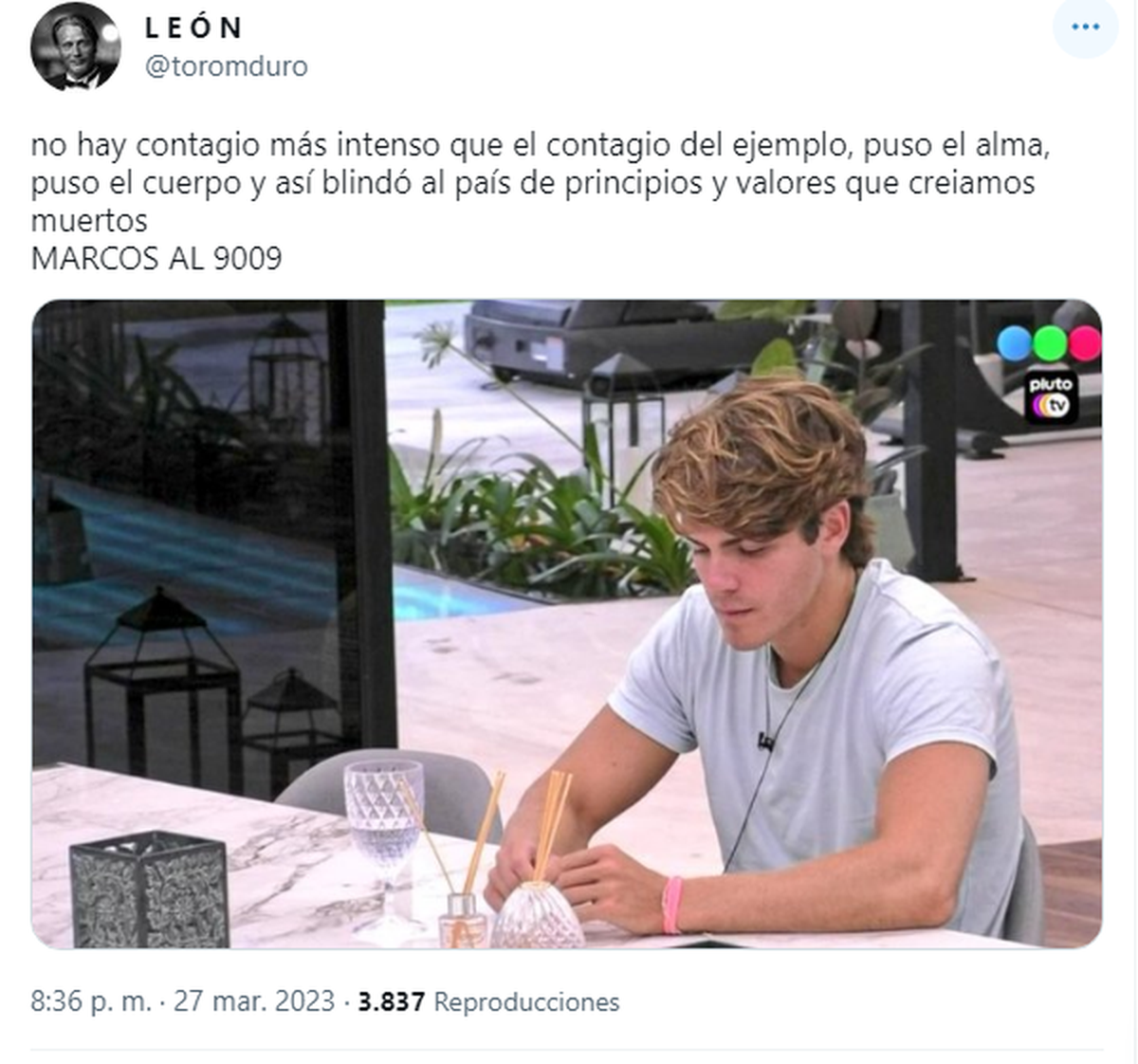 "No hay contagio más intenso que el contagio del ejemplo, puso el alma, puso el cuerpo y así blindó al país de principios y valores que creiamos muertos MARCOS AL 9009.