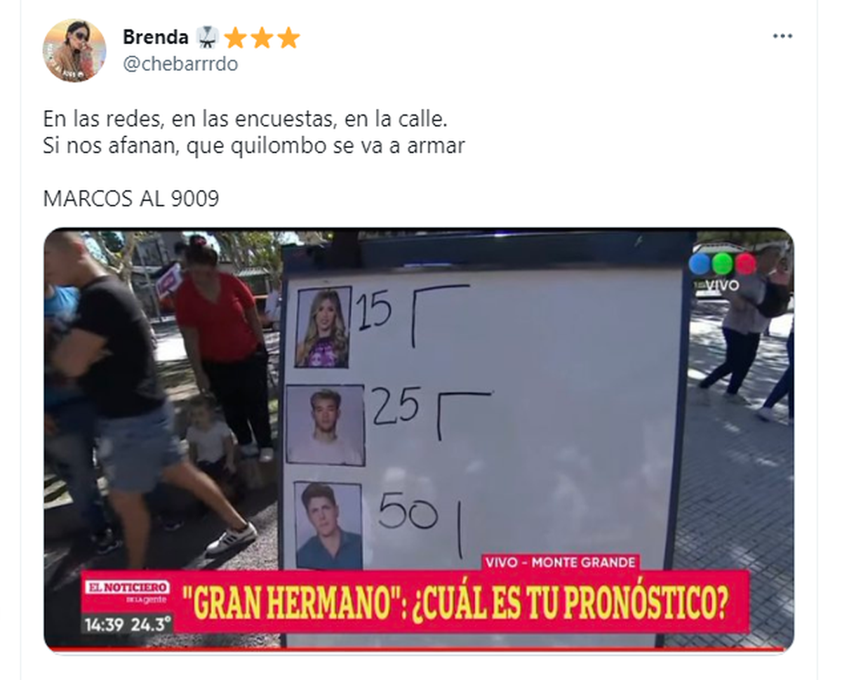 "Qué quilombo se va a armar": Gran Hermano y Marcos al 9009