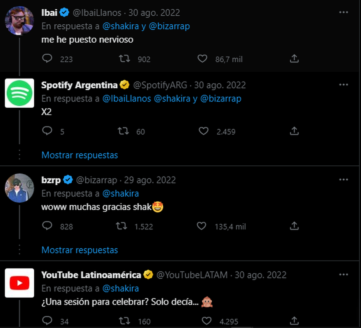 En los comentarios de la publicación estuvieron presentes YouTube Latinoamérica y Spotify, además del propio Bizarrap. Ya se veía venir algo.