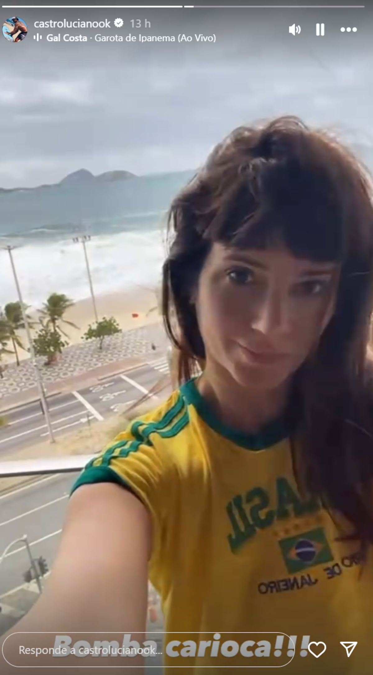 Castro respondió publicando en sus historias de Instagram una imagen de su pareja en la playa, donde ella lleva puesta una remera de Brasil, y acompañó la foto con un halagador mensaje: “Bomba carioca”.