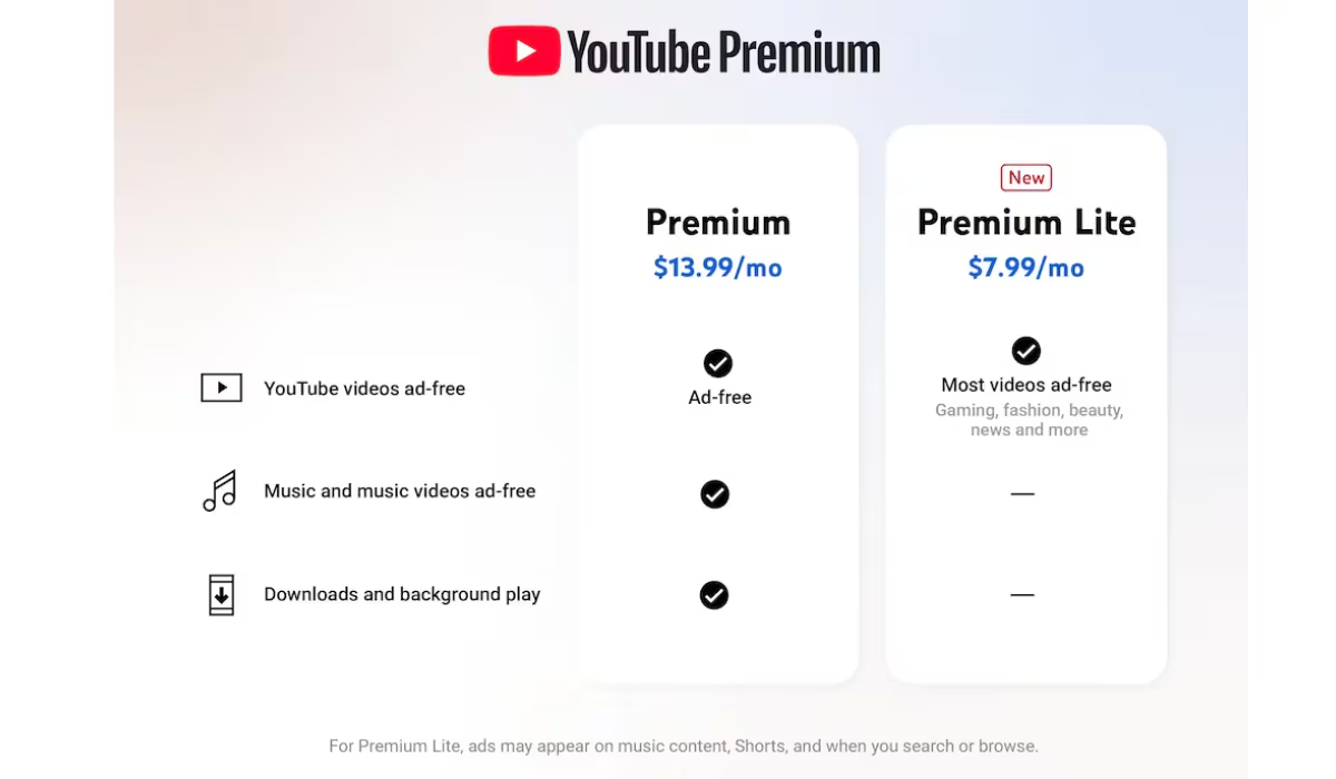 Lo que no incluye el plan de YouTube