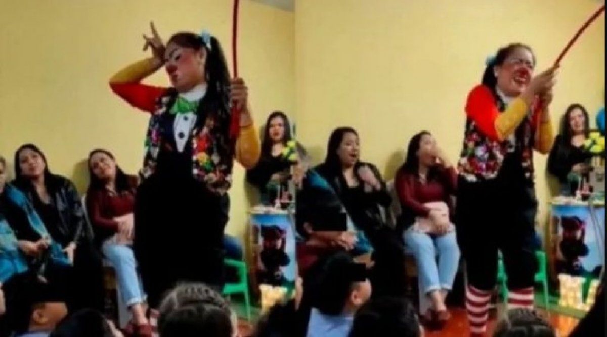 En el clip publicado, se puede ver a la mujer disfrazada de payasa, en un cumpleaños infantil. En un determinado momento la joven agarra una soga y como parte de su acto dijo en tono alto “La soga va a deshipnotizar cuando detecte a un papá que le esté siendo infiel a su esposa”.