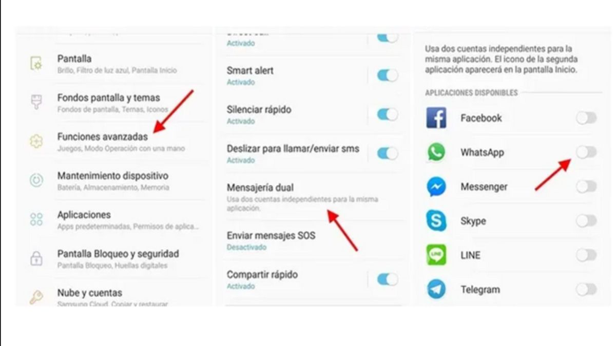 - En el apartado de Mensajería dual, lo único que tienes que hacer es activar la función para las aplicaciones de mensajería que te interesan: en este caso, WhatsApp.