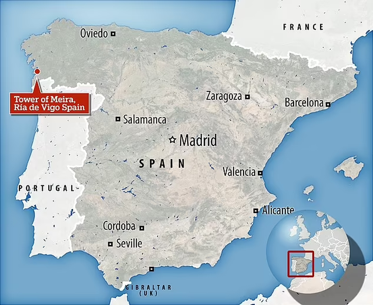 El descubrimiento tuvo lugar en la Torre medieval de Meira, ubicada en la Ría de Vigo, España, y se estima que tiene alrededor de 500 años.