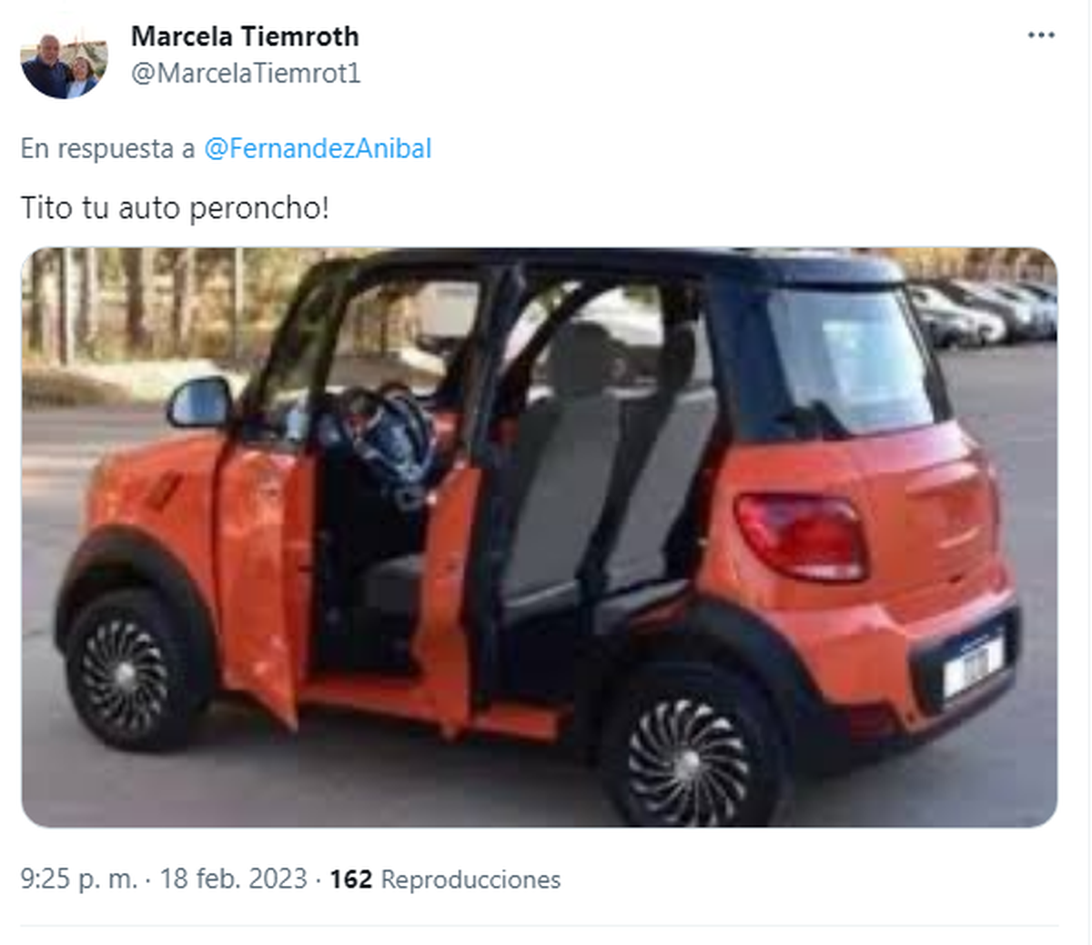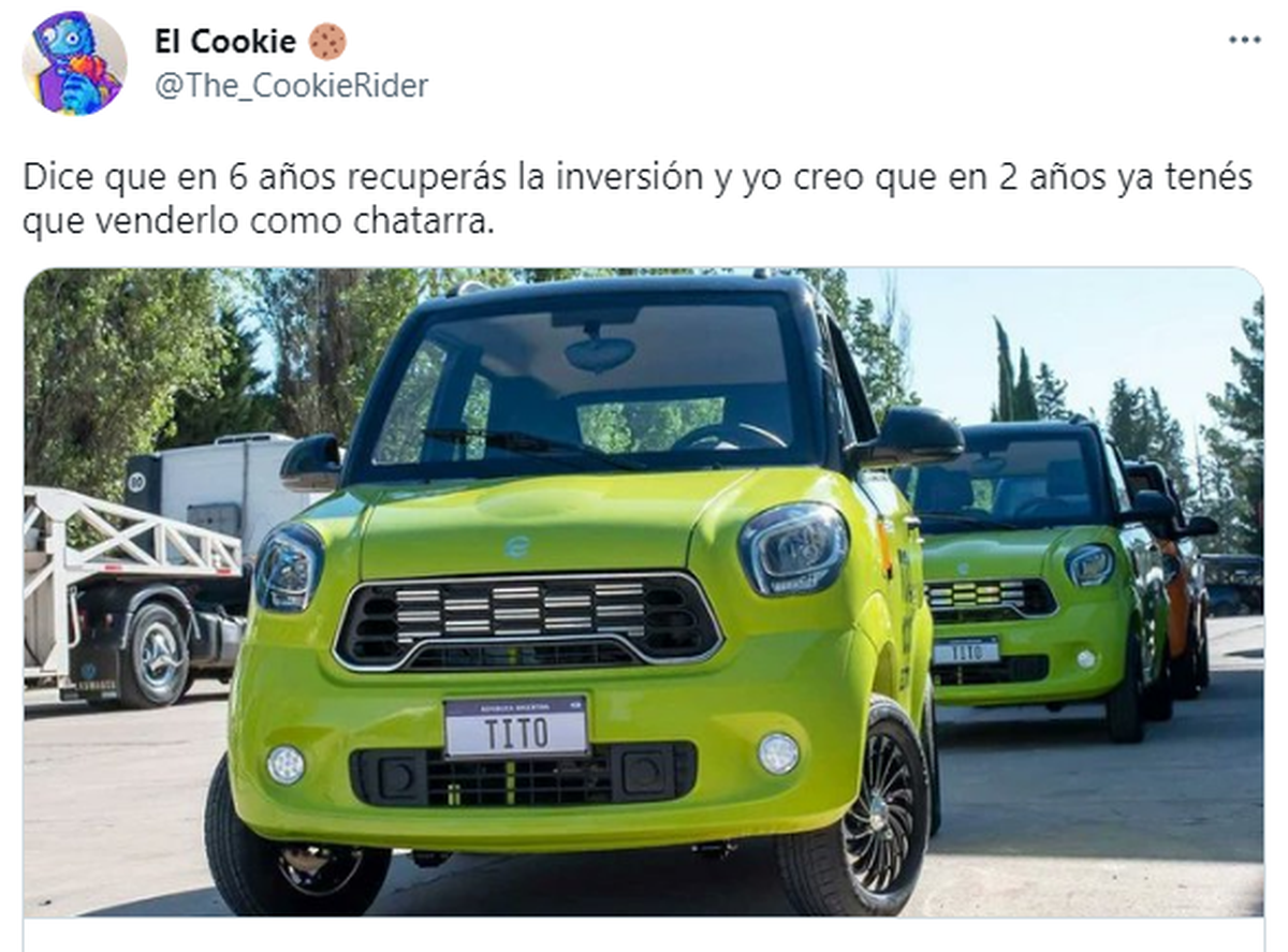 "Auto eléctrico chino: USD 2300 Tito "el auto eléctrico argentino": USD 22.000."
