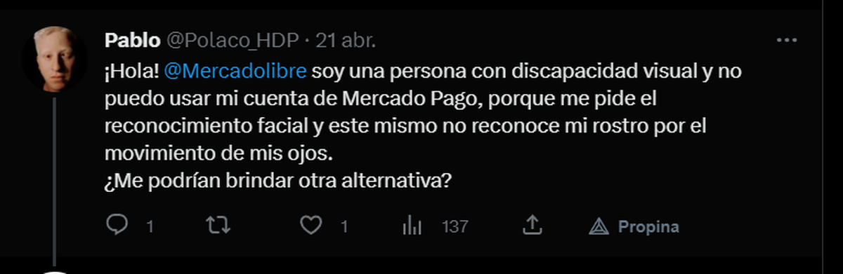 Si bien se trata de una herramienta poderosa, por ejemplo, para ayudar a las personas a verificar su identidad o para prevenir fraudes y suplantación de identidad, más teniendo en cuenta que se trata de una billetera virtual, es una complicación para aquellas personas con discapacidad visual.