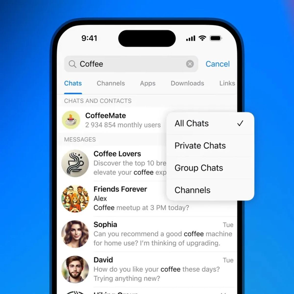 La actualización no se limita a la verificación: Telegram incorporó filtros de búsqueda específicos para chats privados, grupales y canales, mejorando significativamente la experiencia del usuario. Como si fuera poco, la app sorprende con la posibilidad de convertir regalos en NFTs y suma reacciones con emojis para los mensajes de servicio, como cuando alguien se suma a un grupo.