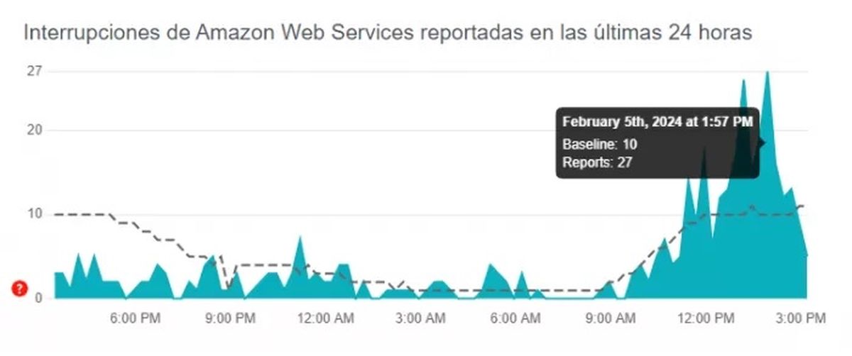 En tanto, la plataforma que proporciona información en tiempo real sobre el estado de varios sitios web Downdetector reveló que los servicios de AWS se vieron interrumpidos durante el mediodía, con un pico de reportes a eso de las 14:00 hs.