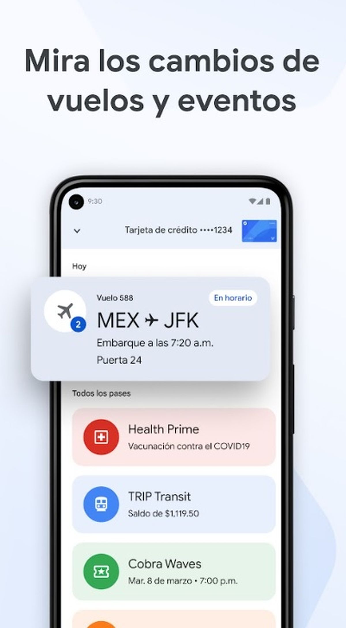También, la app permite almacenar tarjetas de embarque de 30 aerolíneas internacionales. Podrán agregarse una vez realizado el check in y, desde la Billetera, se podrá ver toda la información disponible en una tarjeta física, como nombre del pasajero, puerta de embarque, número de vuelo, hora de embarque y salida, grupo de embarque y número de asiento.