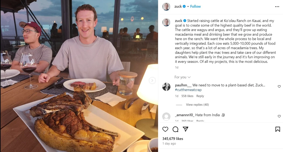 Además de PETA, muchos otros usuarios de Instagram criticaron el proyecto de Zuckerberg y lo acusaron de ser irresponsable con el medio ambiente y de maltratar a los animales.