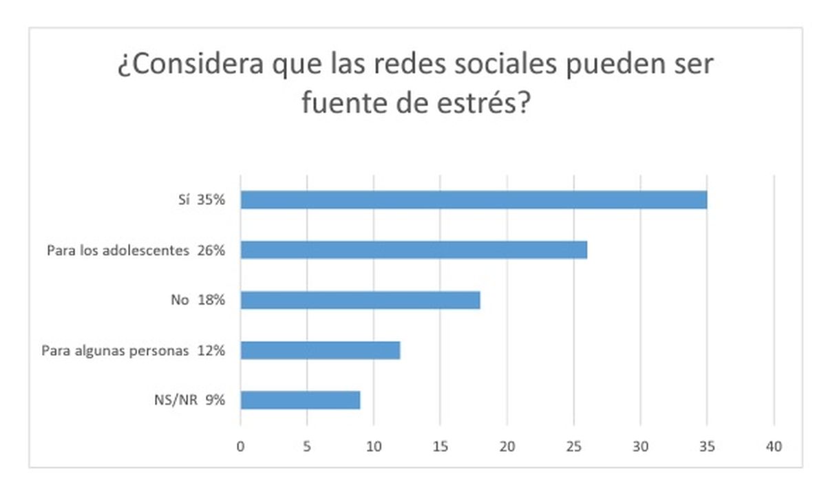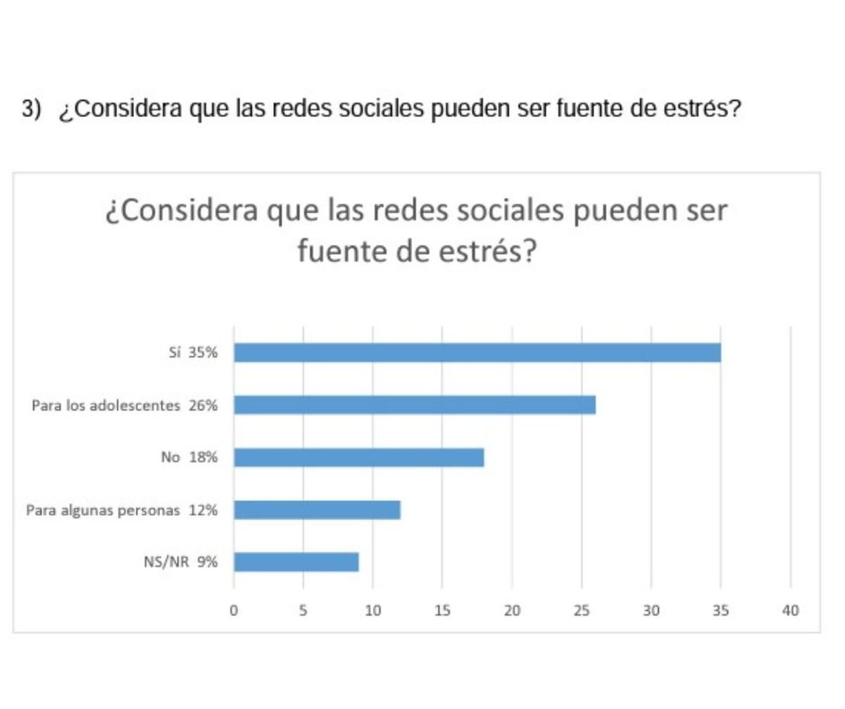 De acuerdo con el último sondeo del Centro de Opinión Pública (COPUB) de la Universidad de Belgrano, el 73% de las personas considera que las redes sociales pueden ser fuentes de estrés para los que las emplean asiduamente y en especial para los adolescentes.