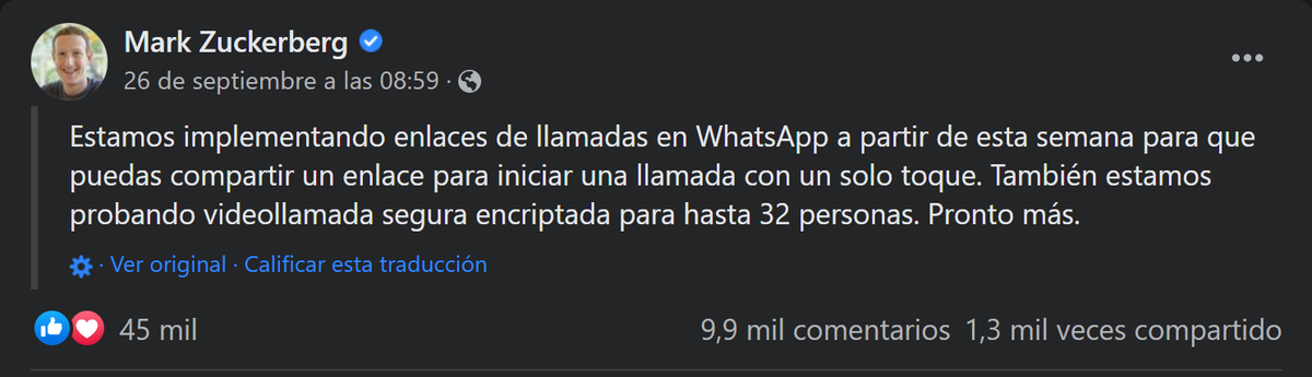 El CEO de Meta anunció que esta función llegará a WhatsApp esta en los próximos días semana, por lo que se espera que no todos los usuarios la obtengan al mismo tiempo. Vale la pena señalar que esto es solo para aquellos que tienen instalada la última versión de las aplicaciones de iOS y Android.