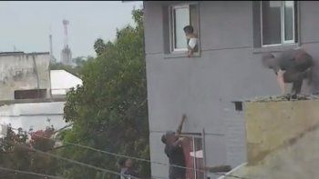 - Un bebé fue rescatado por un vecino, junto con la policía, de caer por una ventana de un 2º piso. Todo quedó registrado por las cámaras de seguridad.