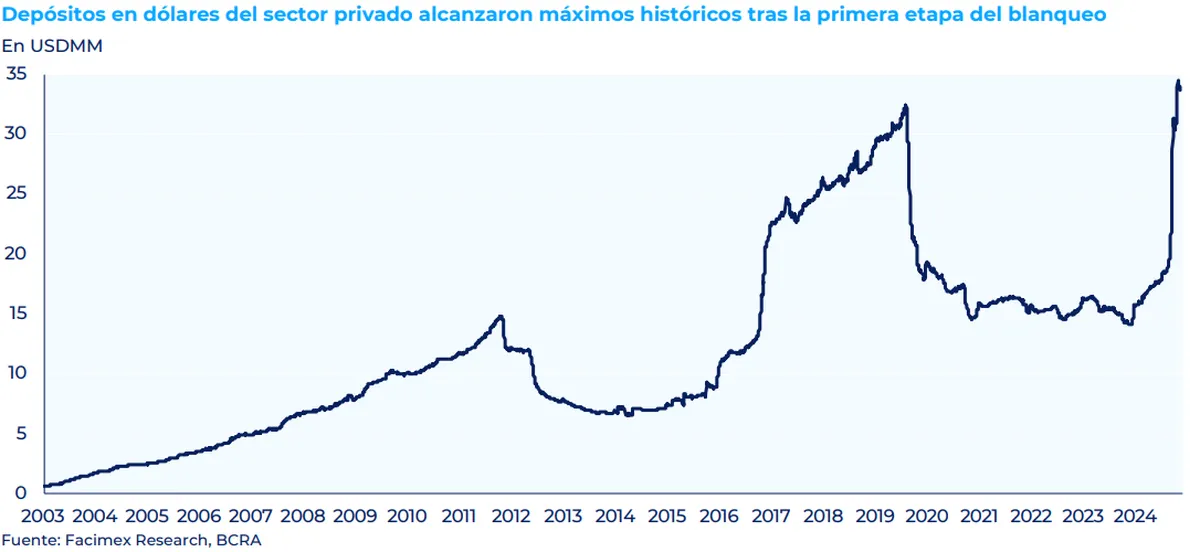 El blanqueo de capitales ha sido una herramienta fundamental para mejorar la posición financiera del país. Desde que comenzó el programa, los depósitos en dólares han aumentado en casi 20.000 millones, alcanzando un máximo histórico desde la salida de la convertibilidad.