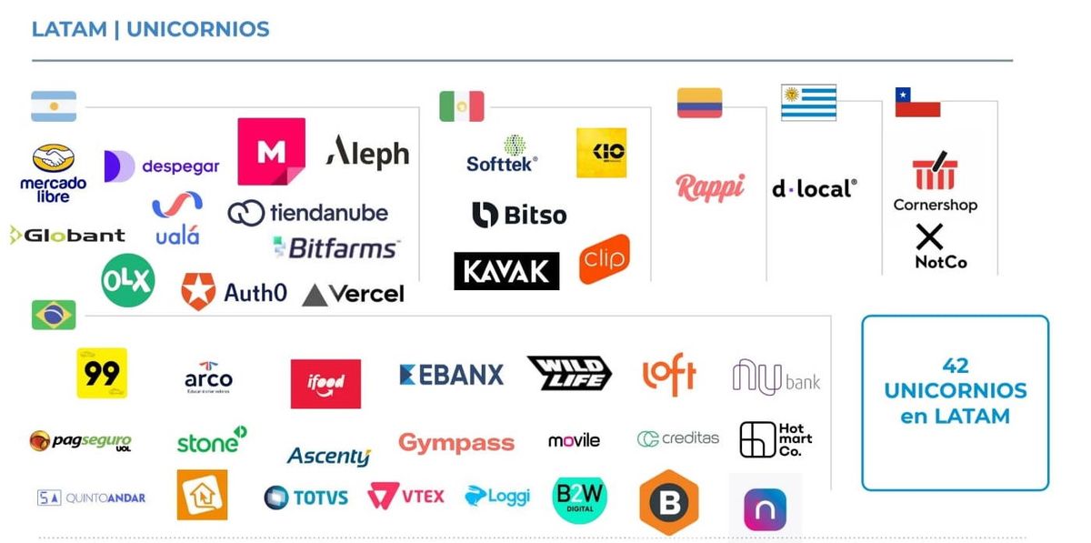 Sin embargo, solo seis países latinoamericanos cuentan con unicornios: Argentina, Brasil, Colombia, Chile, México y Uruguay. Brasil reúne a la mitad de estas empresas con un total de 25; Argentina lo sigue con 10 y México con 9. En total, la región cuenta con 49 empresas de base tecnológica valuadas en, al menos, 1.000 millones de dólares.