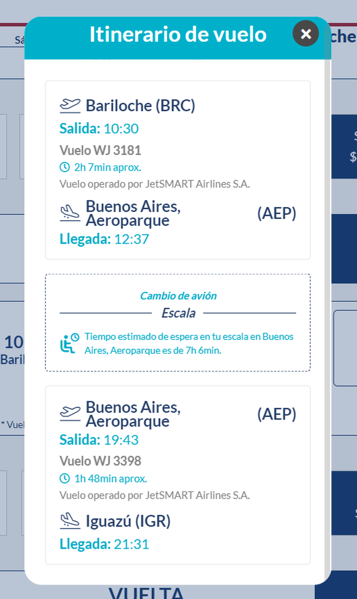 Por ejemplo, si queremos viajar desde Bariloche a Iguazú, debemos ingresar a la página oficial de JetSmart Argentina (jetsmart.com.ar) y seleccionar el origen (Bariloche) y el destino (Iguazú). Automáticamente, la web ofrecerá la opción del vuelo con la escala incorporada.