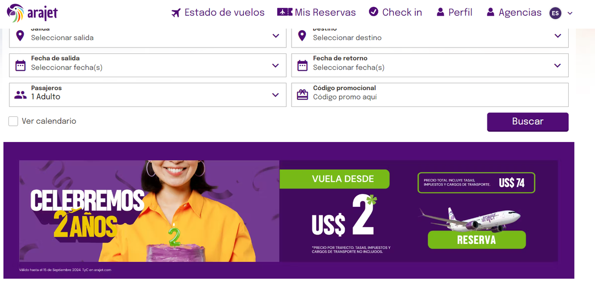 Al ingresar a la página web de la aeroínea (www.arajet.com) aparecerá la opción para reservar los pasajes. Se debe hacer clic en la opción RESERVA y allí aparecerán todas las rutas que opera la low cost (El Caribe, Chile, Brasil, Colombia, Argentina y más).
