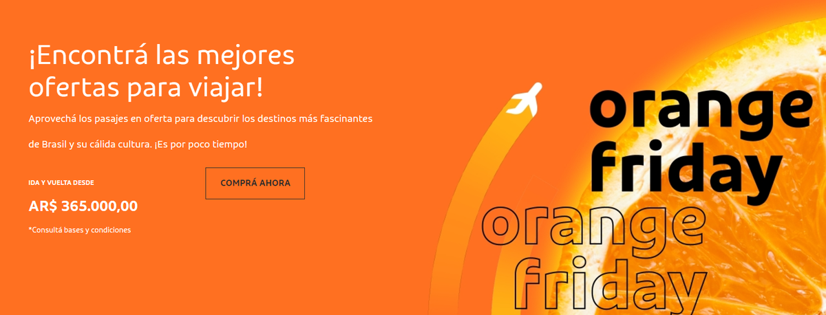 La aerolínea brasileña, según anunció a través de un comunicado, ofrece pasajes desde el viernes 29/11 al domingo 1° de diciembre de 2024 para viajar a Brasil desde Buenos Aires, Córdoba, Mendoza y Rosario. Las promociones (ida y vuelta, con impuestos y tasas incluidas):