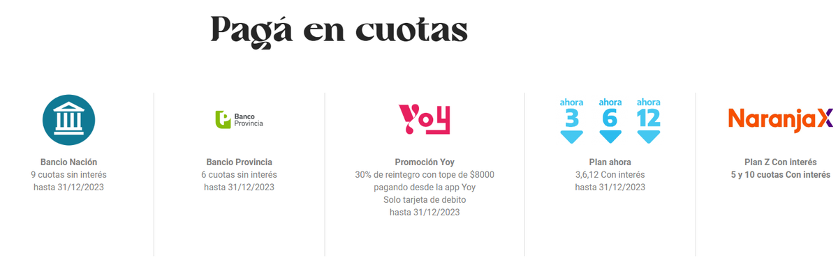 - 9 cuotas sin interés pagando con Banco Nación, hasta el 31 de diciembre de 2023.