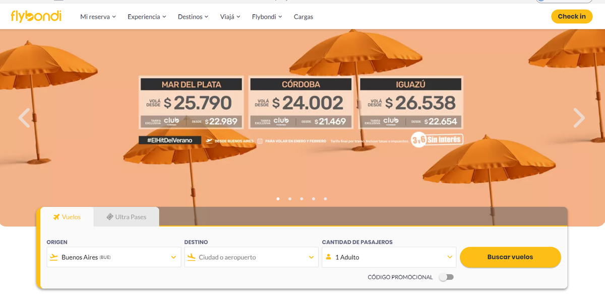 Tras la última suba de precios, las low cost JetSmart, Flybondi y Aerolíneas Argentinas, lanzan descuentos para repuntar las ventas. Cómo conseguirlos.