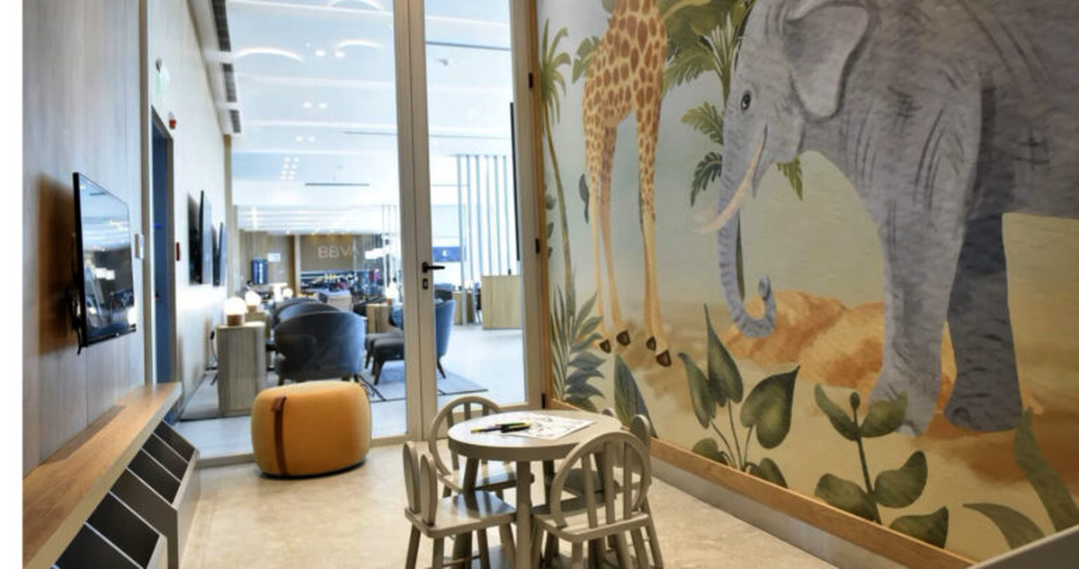 Dentro de la sala hay un área para niños entre otras comodidades, como espacio de "coworking" para aquellos que realicen viajes de trabajo.