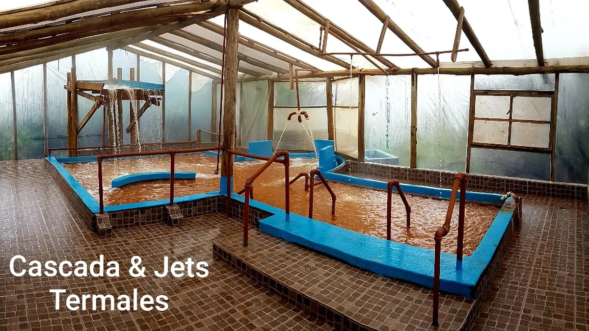 El spa termal cuenta con tres piscinas cubiertas a distinta temperatura, hidromasajes, cascada estática y sauna hidrotermal. También hay 5 piscinas termales al aire libre, el sector de fangoterapia y vestuarios y sanitarios.