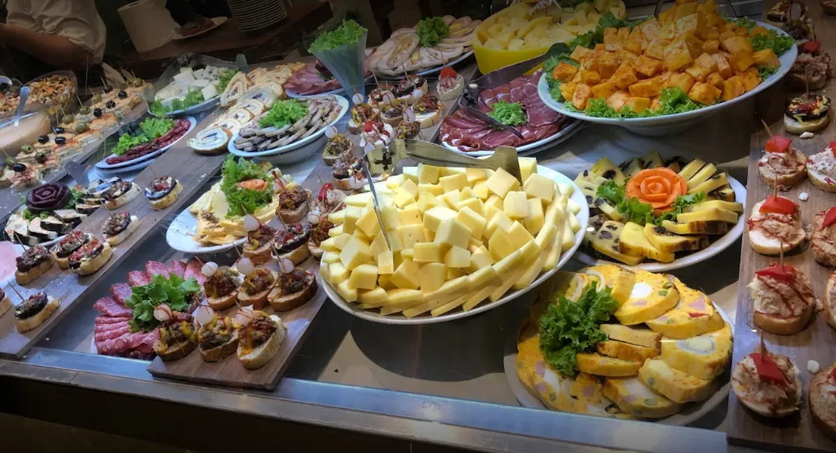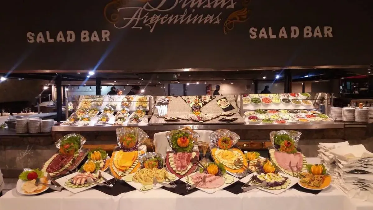 Platos argentinos y de cocina internacional. Como por ejemplo: tacos con guacamole o picante, carnes argentinas, parrilla libre, se pueden acompañar con papas fritas, ensaladas, vitel toné, piononos rellenos, matambre de pollo y carne, lengua a la vinagreta y variedad de guarniciones. También hay una isla de fiambres, sushi, mariscos y más.
