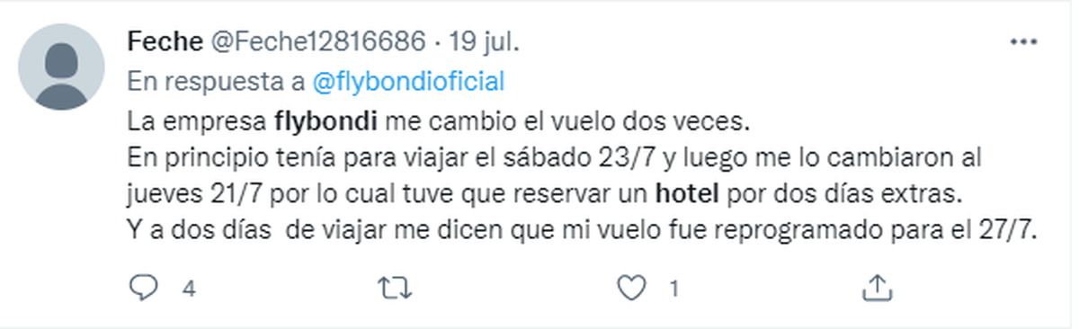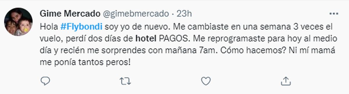 Además, aseguró: “Reafirmamos todos los días nuestro propósito fundacional: que cada vez más personas puedan tener la libertad de volar, con un servicio con estándares de calidad internacionales, seguro y con tarifas bajas". En contraposición a las expresiones de muchos usuarios que expresaron su furia en redes sociales a lo largo de estos días.