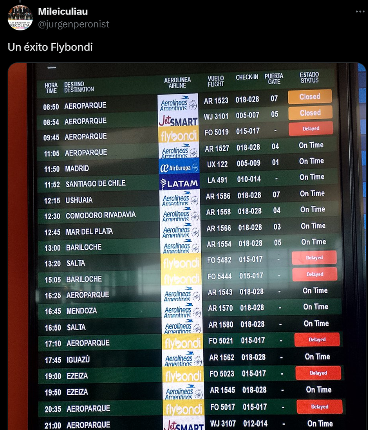 Sin embargo, lo más recurrente son las quejas de los pasajeros que colman las redes sociales, Aeroparque, Ezeiza o los diferentes aeropuertos del país.