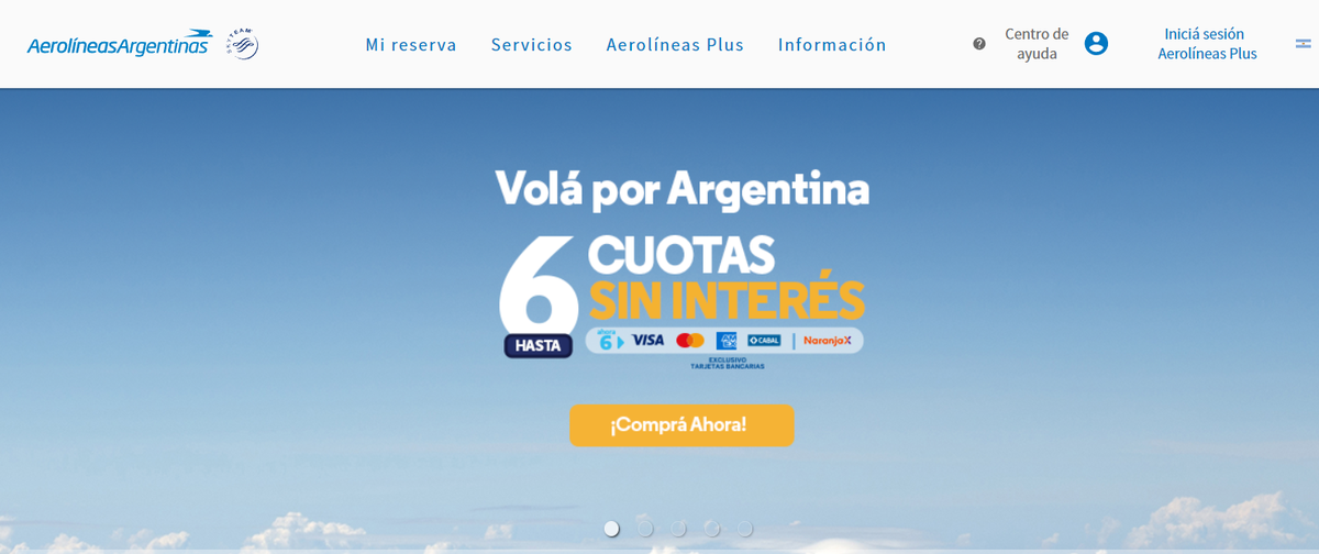 Por su parte, Aerolíneas Argentinas también ofrece 20% de descuento para jubilados de Anses y un acompañante. Y algo muy codiciado por los argentinos que son las cuotas sin interés (hasta 6 con diferentes medios de pago Visa, MasterCard, American Express, Naranja X..).