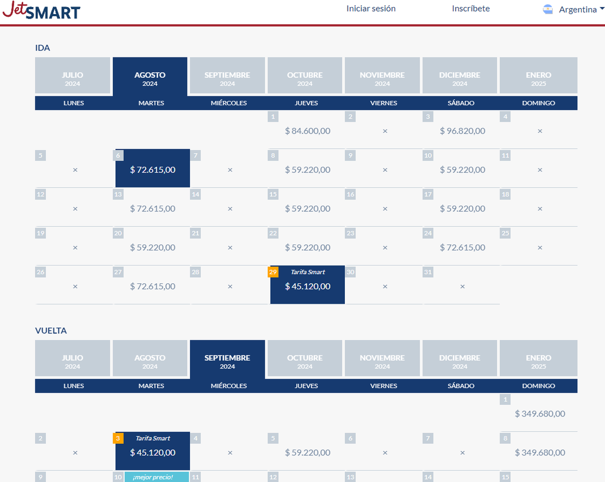 Cuenta con tres frecuencias semanales: los martes, jueves y sábados. Los pasajes están disponibles en la web oficial de JetSmart (jetsmart.com) y sorprenden sus bajos precios.