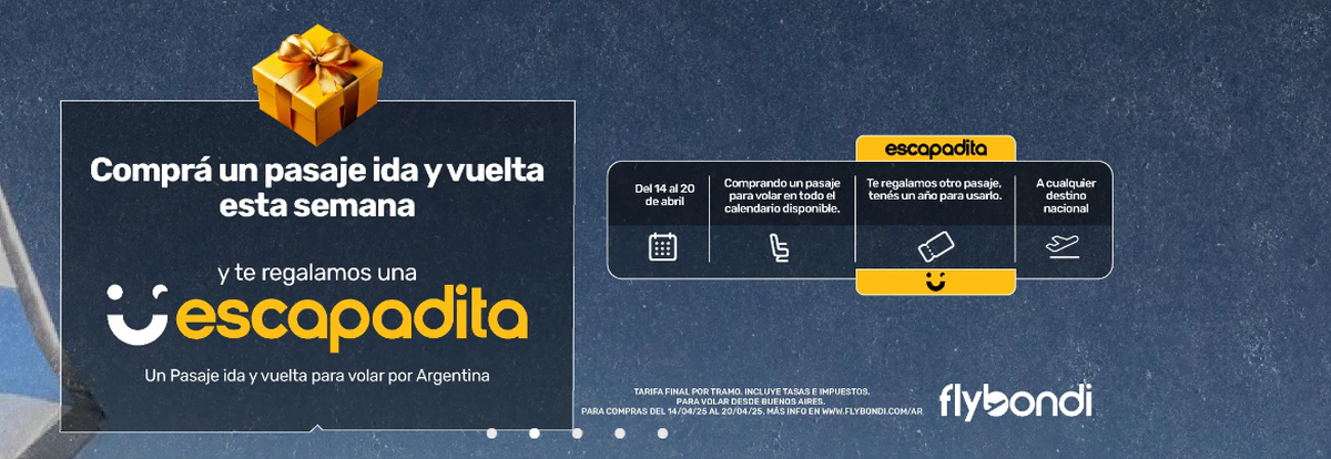 "Comprá un pasaje ida y vuelta esta semana y te regalamos una escapadita", expresa la low cost a través de su web. Según informó Flybondi, regala un pasaje ida y vuelta para volar por Argentina.