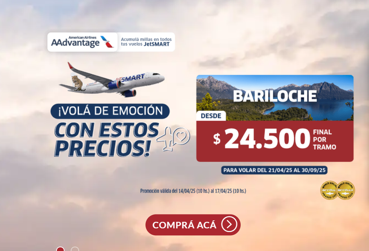 Las aerolíneas JetSmart y Flybondi ofrecen grandes descuentos y promociones para realizar escapaditas o viajar dentro de la Argentina. En el caso de JetSmart volvió con su oferta en pasajes por menos de $25.000 (una verdadera ganga), mientras que Flybondi no quiso quedarse atrás y ofrece pasajes gratis.