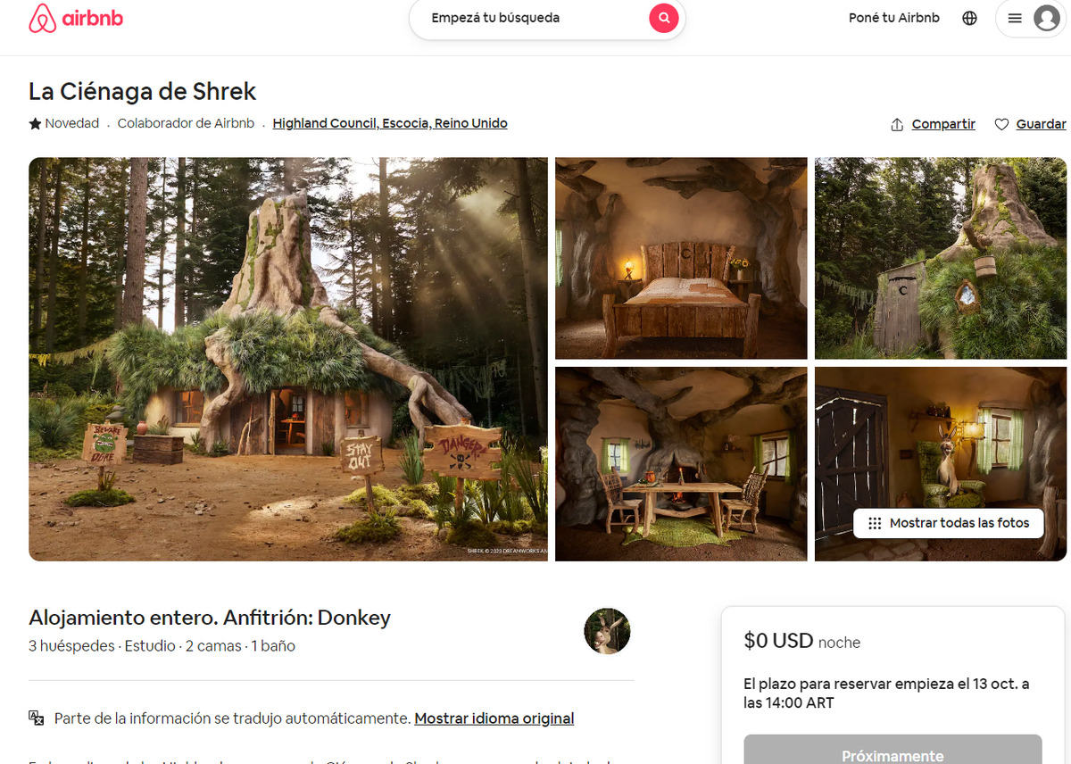 "Shrek's Swamp" es uno de los muchos alojamientos inspirados en el entretenimiento publicados por Airbnb en los últimos meses.