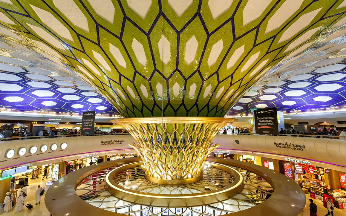 En los Emiratos Árabes, más precisamente en Abu Dabi se encuentra este aeropuerto. Está construido en forma de X y alberga más de 7.000 paneles solares. Además de árboles, marcando su compromiso con la sostenibilidad.